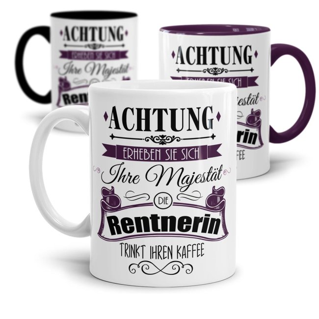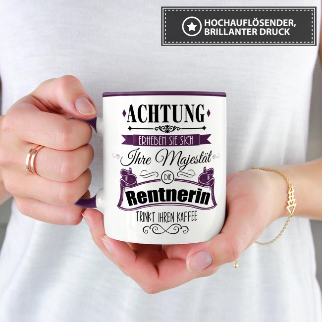Lustige Tasse als Geschenk für angehende Rentnerinnen - ein witziges Abschiedsgeschenk für die Kollegin und Freundinnen, die in Rente oder Ruhestand gehen, als Erinnerung an nette Kollegen und stressige Zeiten. Mit dieser hochwertigen Keramiktasse mit lustigem Rentenspruch freut sich jede Pensionärin auf ihre Kaffeepause im wohlverdienten Ruhestand .