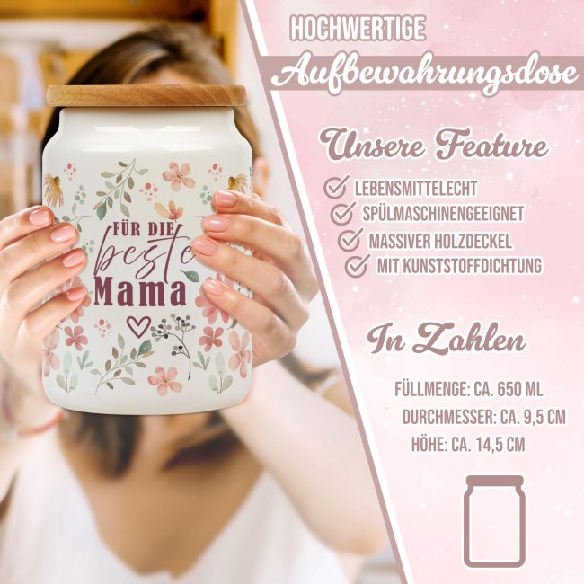 Die Vorratsdose "Für die beste Mama" ist eine einzigartige Geschenkidee zum Geburtstag, Muttertag oder als Dankeschön Geschenk. Das neue Lieblingsstück der Mama und gleichzeitig schönes und praktisches Accessoire im Küchen- oder Wohnzimmerbereich. Dank das brillanten und hochwertigen Fotodrucks sind die Farben äußerst realistisch und lebhaft - Made in Germany. Verschenken Sie die Aufbewahrungsdose an die allerbeste und liebste Mutter.