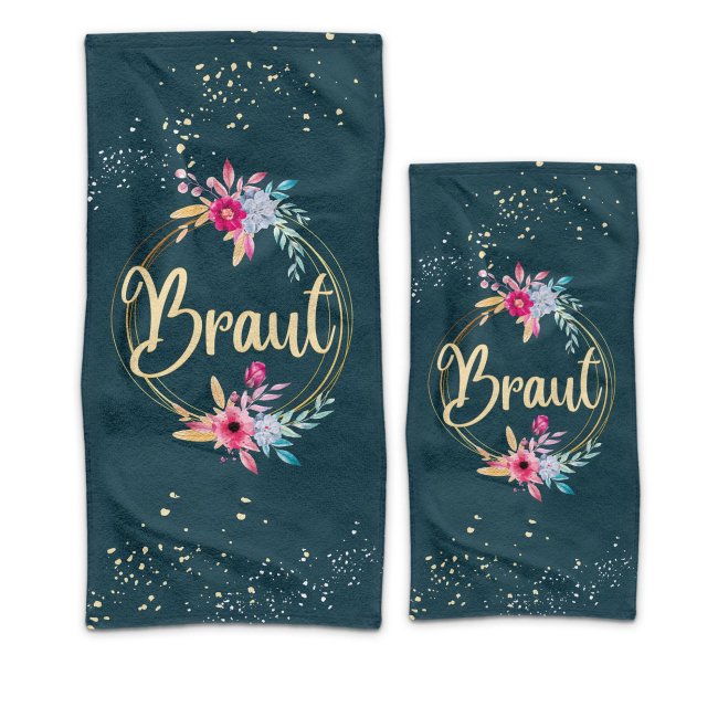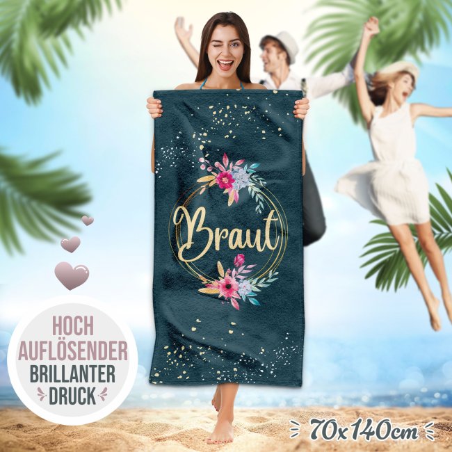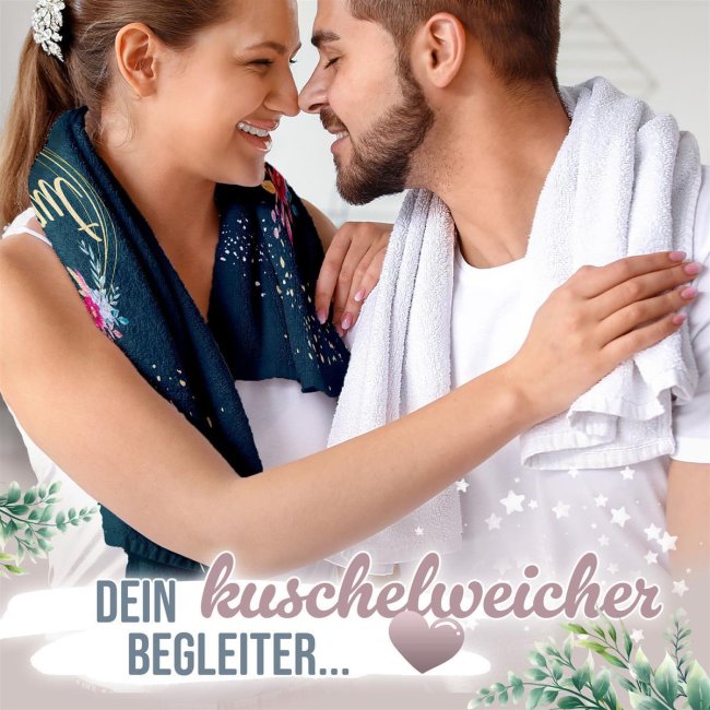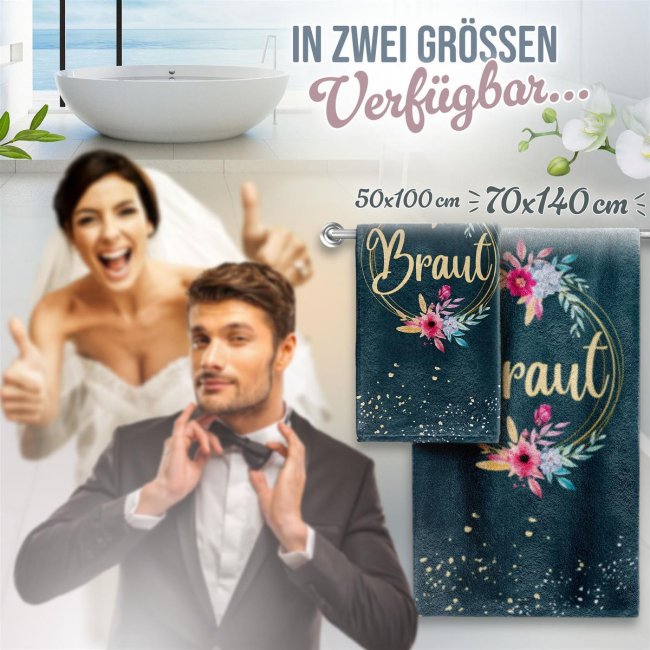 Ein praktisches Hochzeitsgeschenk für die Braut ist dieses liebevoll gestaltete Handtuch. Eine tolle Erinnerung an den Hochzeitstag. Der brillante Druck ist langlebig und sehr waschbeständig.