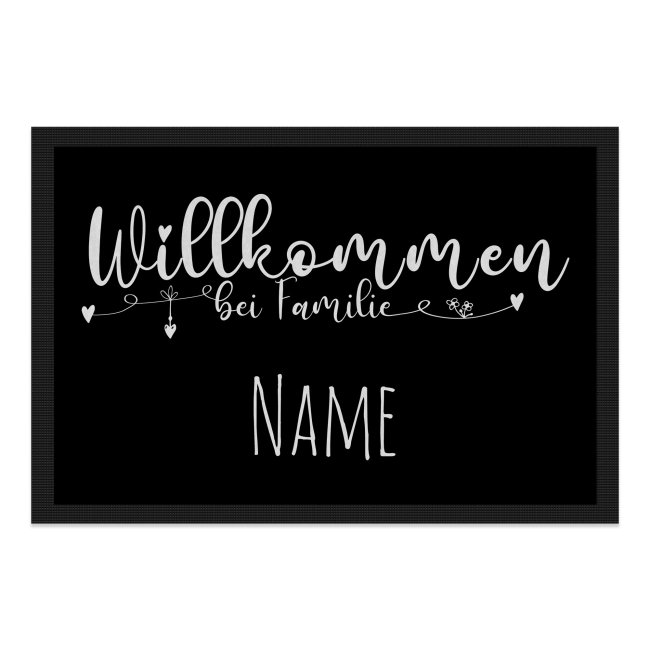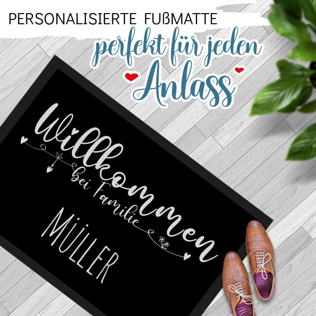 Personalisierbare Fußmatte mit Spruch - Willkommen bei Familie - personalisierbar mit Familienname - ein besonders persönliches Geschenk für die Familie zum Einzug in das neue Haus oder in die neue Wohnung. Perfekt geeignet als Weihnachtsgeschenk von den Großeltern oder Eltern für die Kinder. Ein Muss für jede Haustür, hinter der eine glückliche Familie lebt.