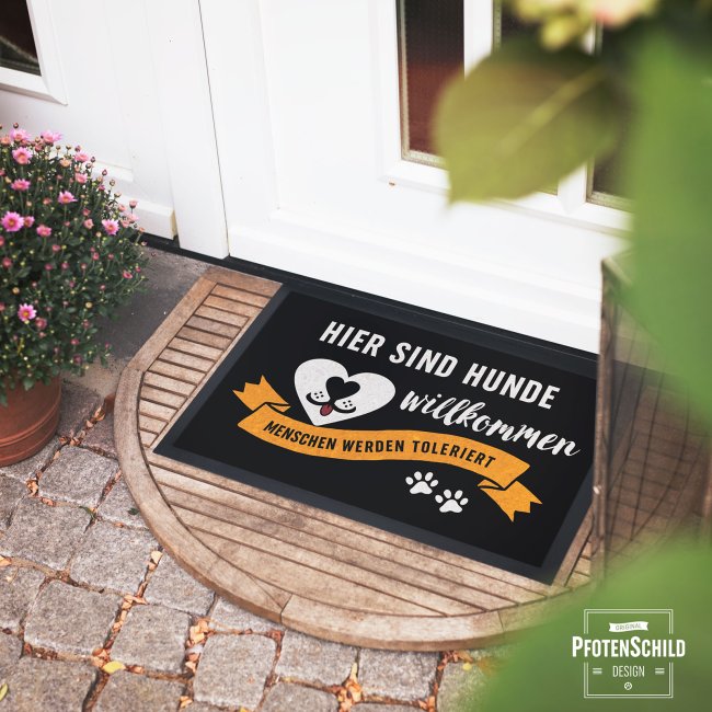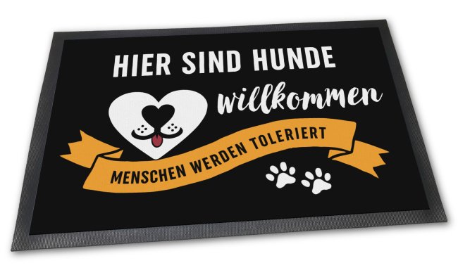 Wenn Sie die Liebe zu Ihrem Haustier sichtbar machen wollen - dann ist eine Fußmatte mit dem passenden Hundespruch "Hier sind Hunde willkommen" die perfekte Möglichkeit, um der Tierliebe Ausdruck zu verleihen. Für alle Hundeliebhaber das perfekte, persönliche und besonders praktische Geschenk zum Umzug oder Einzug - zur Wohnungseinweihung, zum Geburtstag oder zu Weihnachten.