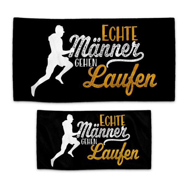 Sport Handtuch - Echte Männer gehen Laufen - unser hochwertiges Handtuch wurde in liebevoller Handarbeit bedruckt und ist die ideale Geschenkidee für Sportbegeisterte und Sportliebhaber. Das Sporthandtuch ist ein individuelles Geschenk für Läufer zum Geburtstag, Herrentag, Vatertag oder einfach nur so - für jeden sportbegeisterten Mann das passende Handtuch - erhältlich in zwei Größen.