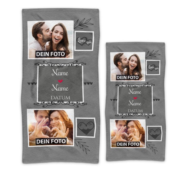 Ein personalisiertes Handtuch, bedruckt mit den Lieblingsfotos und den persönlichen Daten ist etwas ganz Besonderes. Eine tolle Geschenkidee für deine Liebste oder deinen Liebsten - praktisch und persönlich. Du kannst zwischen zwei Handtuch-Größen wählen. Unsere selbst gestalteten Handtücher mit Fotos, Namen und Datum sind ein wundervolles Geschenk zum Geburtstag, zu Valentinstag oder zu Weihnachten. Lade einfach deine Fotos hoch, beschrifte das Handtuch mit deinem Wunschdaten (Namen und Datum) und fertig ist dein personalisiertes Strandtuch. Die Vorderseite des Handtuchs besteht aus 100% bedruckbarer Mikrofaser und die Rückseite aus Baumwolle. Dank dieser Materialkombination vereint das Handtuch ein angenehmes Gefühl auf der Haut mit einer langlebigen und brillanten Druckqualität. Es kann problemlos bei 40°C gewaschen werden.