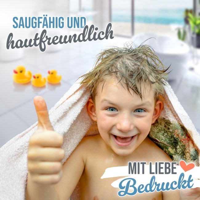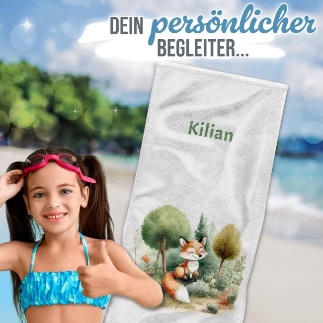 Das liebevoll gestaltete Kinder-Handtuch mit Fuchs kannst Du mit einem Namen in unserem Produktdesigner ganz einfach personalisieren. Das süße Namens-Handtuch ist in zwei Größen erhältlich. Ein besonderes und praktisches Geschenk für Kinder zum Kindertag, Geburtstag oder einfach mal zwischendurch. So gibt es kein Verwechseln mehr - Das Kinderhandtuch mit Name wird auf jeden Fall zum Lieblingshandtuch Deines Kindes im Badezimmer.