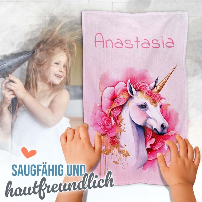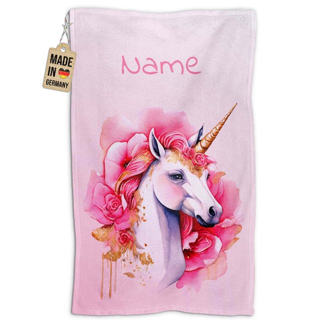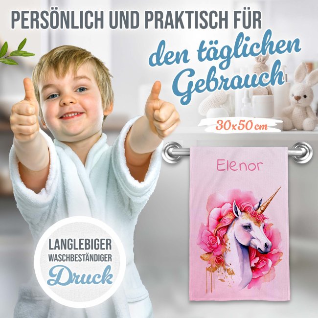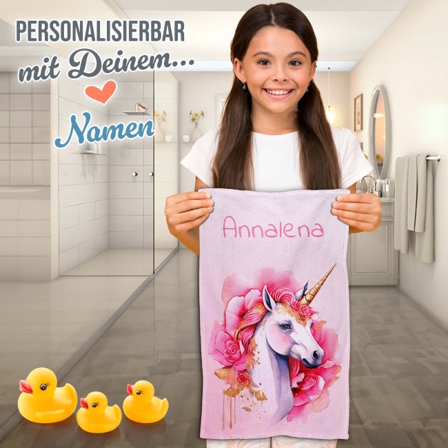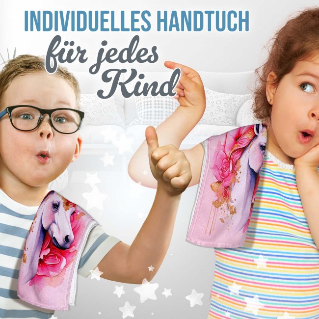 Das liebevoll gestaltete kleine Kinder-Handtuch "Einhorn" kannst Du mit einem Namen in unserem Produktdesigner ganz einfach personalisieren. Das kleine Namenshandtuch in der Größe 30 x 50 cm ist perfekt als kleines Reisehandtuch zum Mitnehmen geeignet - auch für die Kita ist das kleine Kinderhandtuch ein besonderes Utensil. Ein besonderes und praktisches Geschenk für Kinder zum Kindertag, Geburtstag oder einfach mal zwischendurch. So gibt es kein Verwechseln mehr!