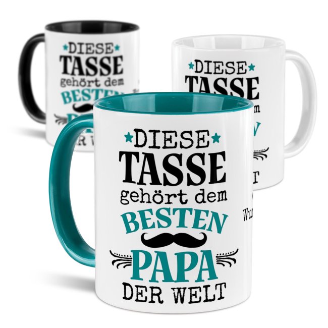 Unsere hochwertig bedruckte Tasse mit Name und Spruch - Diese Tasse gehört dem besten Papa - ist das perfekte Geschenk für verschiedenste Anlässe. Ob zum Geburtstag, zu Vatertag oder zu Weihnachten. Die spülmaschinenfeste und mikrowellengeeignete Keramiktasse wird mit dem Wunschnamen in unserer hauseigenen Produktion in Deutschland für Sie hergestellt. Verschenken Sie eine besondere Namens-Tasse an den besten Papa.