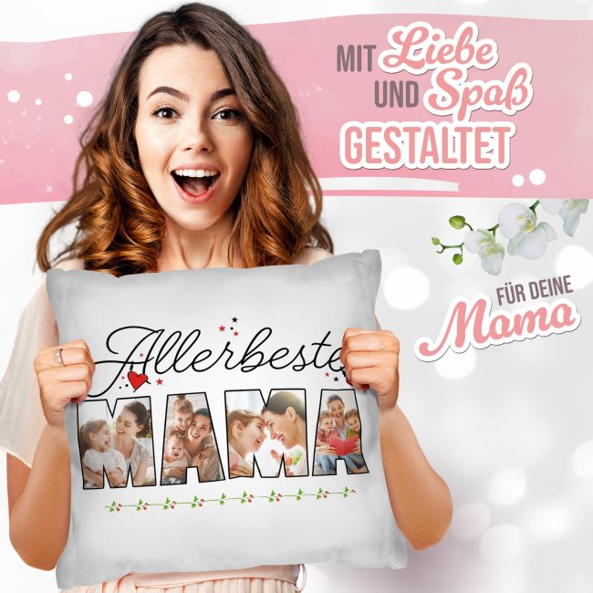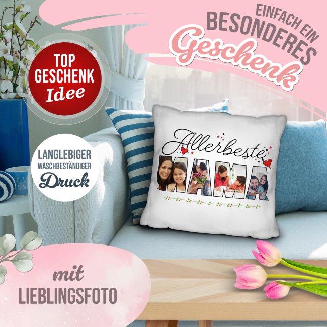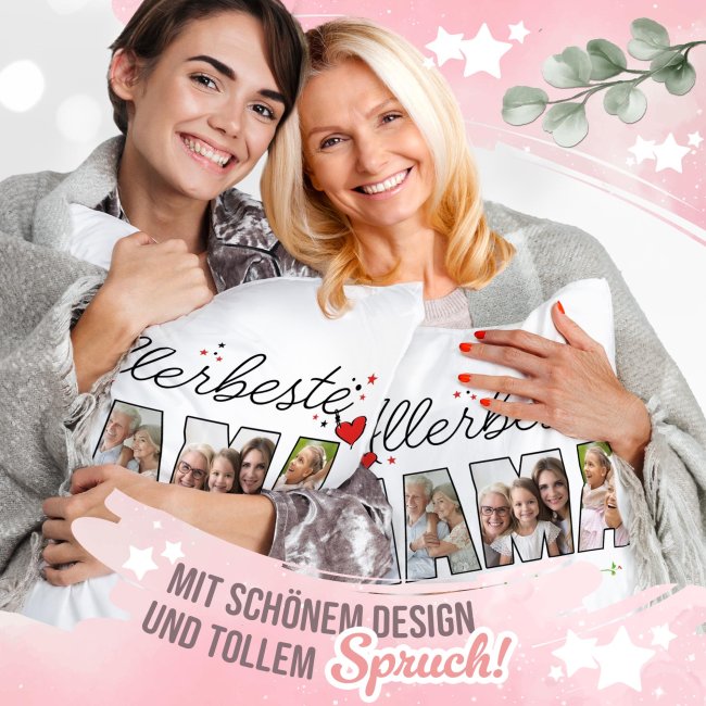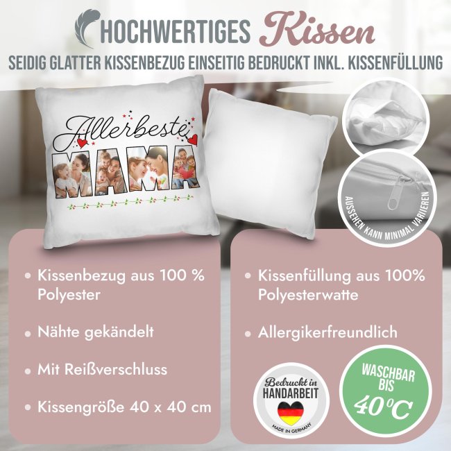 Unser hochwertig bedrucktes Kissen ist ein einzigartiger Hingucker auf dem Sofa, Sessel oder Lieblingsplatz. Das hochwertige Kissen wird mit den 4 Lieblingsfotos bedruckt und erhält so den persönlichen Touch. Das perfekte Geschenk für Mama zum Muttertag, Geburtstag oder Weihnachten. Das personalisierte Kissen wird komplett mit passender Kissenfüllung geliefert. Durch den hochwertigen Fotodruck kommen alle Farben äußerst realistisch, lebhaft und brillant aus unserer hauseigenen Produktion - Made in Germany. Werden Sie kreativ und verschenken Sie die schönsten Erinnerungen auf einem einzigartigen Fotokissen.