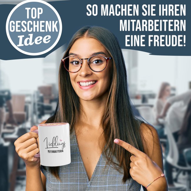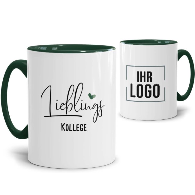 Bereiten Sie Ihren Kollegen und Mitarbeitern eine besondere Freude mit einer ganz persönlichen Werbetasse mit Kompliment für den allerbesten Lieblingskollegen, Lieblingsmitarbeiter, Lieblings-Chef oder Lieblings-Assistenten.Sie können die Tasse mit dem Logo Ihrer Firma, Ihrer Arztpraxis oder Ihres Vereins bedrucken lassen und damit perfekt die Teambildung fördern. Die Tasse mit Logo aus hochwertiger Keramik wird Ihre Mitarbeiter und Kollegen begeistern. Erfreuen Sie Ihre Lieblingsmitarbeiter mit einem ganz individuellen Geschenk. Bei jedem Schluck Kaffee wird Ihr Lieblingskollege an Sie denken. Laden Sie einfach Ihr Logo als png-Datei hoch und suchen Sie die passende Beschriftung und Tassenfarbe aus.