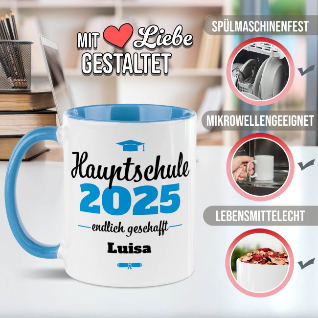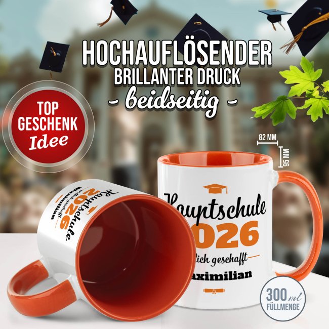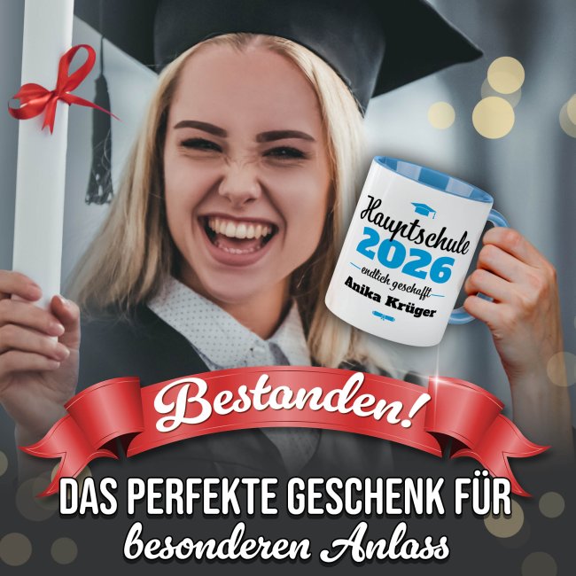 Geschenk zum erfolgreichen Schulabschluss. Ein symbolisches Präsent zum ersten großen Erfolg auf dem Bildungsweg. Dezentes Design, langlebige Qualität und persönliche Note durch individuelle Gestaltung. Hervorragend geeignet als Geschenk oder Motivation für den weiteren Weg. Alltagstauglich, mikrowellengeeignet und spülmaschinenfest. Eine Tasse, die motiviert und den Moment festhält.