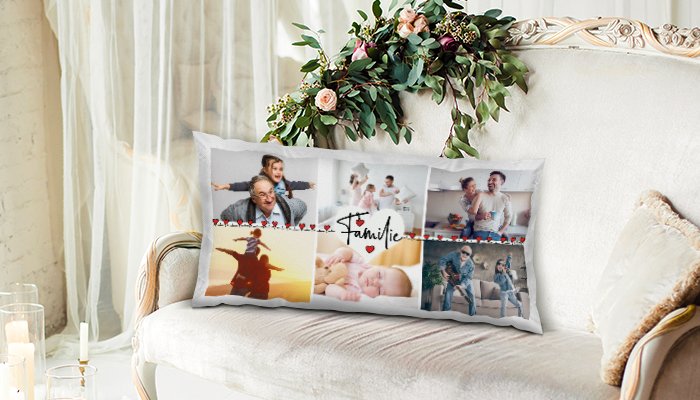 Ja, Du hast die Möglichkeit, mehrere Fotos auf ein Kissen drucken zu lassen. Nutze unseren Online-Designer, um verschiedene Bilder auf das Kissen zu platzieren. Oder wähle ein Kissen mit Fotocollage und lade Deine Fotos hoch.