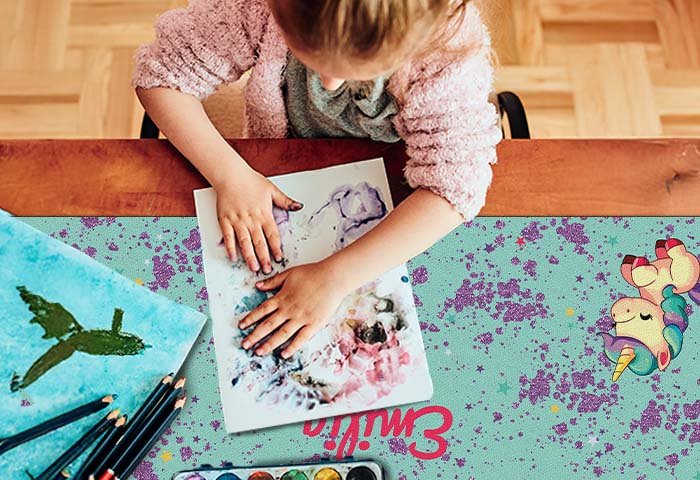 Unsere bedruckten Schreibtischunterlagen gibt es in 2 verschiedenen Größen. Mit den Maßen 60 x 35 cm oder 80 x 30 cm und einer Stärke von 2mm ist die Schreibunterlage ideal für den Schreibtisch der Kinder geeignet.