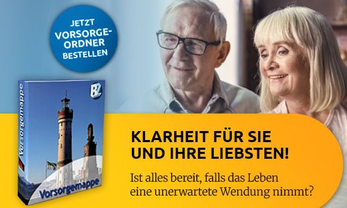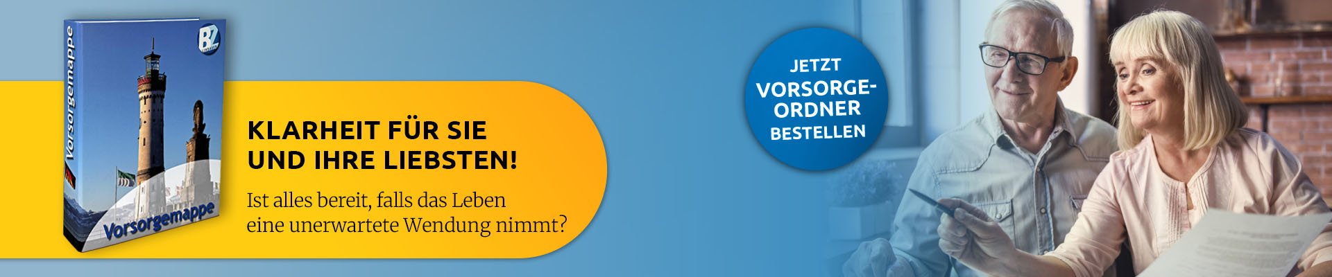 Der Vorsorgeordner Lindauer Bürgerzeitung ist mehr als nur ein Ordner – er ist Ihr persönlicher Begleiter, der Ihnen hilft, alle wichtigen Dokumente und Informationen übersichtlich zu sammeln und im Notfall schnell zur Hand zu haben. Mit diesem hochwertigen Ordner behalten Sie den Überblick über Ihre Versicherungen, Vorsorgevollmachten, Patientenverfügungen, Kontaktdaten und weitere wichtige Unterlagen. Er gibt Ihnen und Ihren Angehörigen die Sicherheit, im Ernstfall gut vorbereitet zu sein und Ihre Wünsche klar festzuhalten. Lassen Sie sich nicht überraschen – sorgen Sie jetzt vor und schenken Sie sich und Ihren Liebsten das gute Gefühl, bestens vorbereitet zu sein. Der Vorsorgeordner Lindauer Bürgerzeitung ist Ihr zuverlässiger Partner auf dem Weg zu mehr Sicherheit und Gelassenheit.