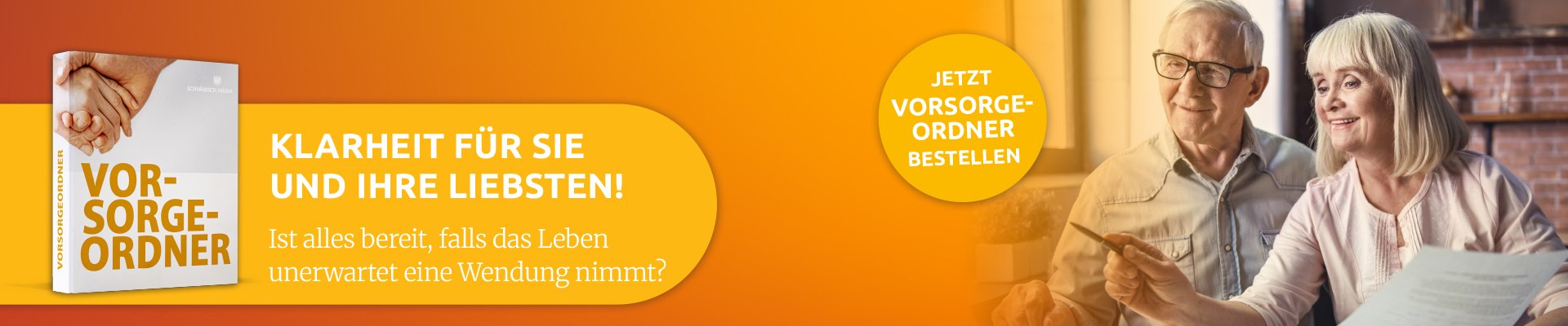 Der Vorsorgeordner Schwäbisch Media ist mehr als nur ein Ordner – er ist Ihr persönlicher Begleiter, der Ihnen hilft, alle wichtigen Dokumente und Informationen übersichtlich zu sammeln und im Notfall schnell zur Hand zu haben. Mit diesem hochwertigen Ordner behalten Sie den Überblick über Ihre Versicherungen, Vorsorgevollmachten, Patientenverfügungen, Kontaktdaten und weitere wichtige Unterlagen. Er gibt Ihnen und Ihren Angehörigen die Sicherheit, im Ernstfall gut vorbereitet zu sein und Ihre Wünsche klar festzuhalten. Lassen Sie sich nicht überraschen – sorgen Sie jetzt vor und schenken Sie sich und Ihren Liebsten das gute Gefühl, bestens vorbereitet zu sein. Der Vorsorgeordner Schwäbisch Media ist Ihr zuverlässiger Partner auf dem Weg zu mehr Sicherheit und Gelassenheit.