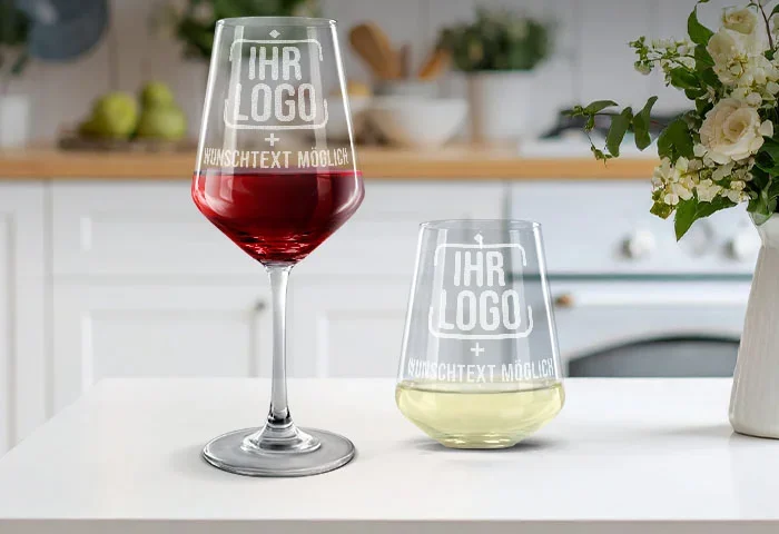 Elegante Weingläser sind perfekt, um Ihre Marke bei Weinverkostungen, Events oder im Fachhandel zu präsentieren. Mit Ihrem Logo bedruckt, werden sie zu hochwertigen Werbegeschenken, die Eindruck hinterlassen.