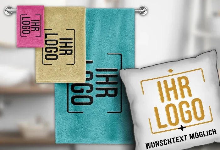 Machen Sie Ihre Marke sichtbar mit personalisierten Textilien! Hochwertige Druckverfahren sorgen für langlebige und farbechte Ergebnisse auf weichen Kissenbezügen und kuscheligen Handtüchern. Ob als Geschenk, Werbegeschenk oder für den eigenen Gebrauch – individuell bedruckte Textilien mit Ihrem Firmenlogo sind praktische und effektive Werbemittel, die bei Kunden und Mitarbeitern gleichermaßen gut ankommen.